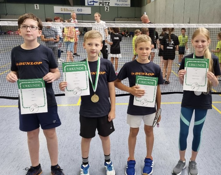 Trotz der weiten Anfahrt machten sich insgesamt vier SpielerInnen des BCR auf den Weg an die Mosel um in der sehr schönen Anlage des FSV Trier-Tarforst um den Sieg mitzuspielen. Am besten hat dies Robin Becker (2.v.l.) hinbekommen, denn er konnte die Altersklasse U10 nach dem Gewinn in Bad Marienberg erneut für sich entscheiden. Nicht minder „schlechter“ spielte sich Charlotte Haevescher auf Rang 2 bei den Mädels U11. Jonathan Koch und Kian Backenecker spielten sich nach teilweise tollen Spielen bis auf die Plätze 4 bzw. 5 vor, so dass der mitgereiste Trainer Benedikt Voigt sehr zufrieden sein konnte, denn die im Training gezeigten Leistungen spiegelten sich auch im Turnierverlauf wieder. Vor Allem die gute Einstellung und der Zusammenhalt innerhalb des Teams war absolut top!